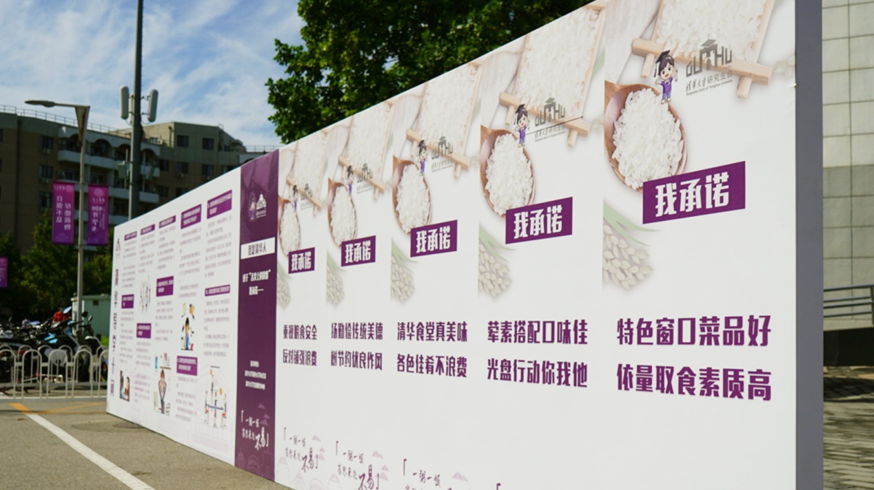 为引导研究生新生同学正确看待和合理处理导学关系,促进形成导学思政育人合力,同时响应节约粮食号召,迎新现场特设置“学风与厉行节约主题展览区”,展示“清华导学十问”及九条“厉行节约口号”,解答新生最关心的导学问题,倡导节约粮食的校园风尚。