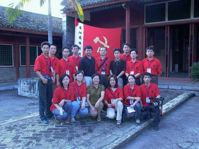8月11下午,报告团一行来到了粤东会馆。这里本是清朝时期广东商人在百色议事、集会的埸所。1929年12月著名的百色起义打响,红七军军部就设在这里。同学们看到,军部会议室、邓小平和张云逸的办公室兼起居室、桌椅长凳、匾额横幅等旧物依然按照当时模样摆放着。浮雕朱梁、深墙灰瓦、斑驳的墙饰,以及红七军使用过的步枪、红缨枪,均把我们带回了75年前那段金戈铁马的峥嵘岁月。