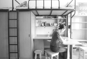 离开报到处,记者又来到了新生入住的“紫荆公寓”。这是一栋充分体现校园建筑人文特色的学生公寓,内部布局充分考虑到空间的合理利用,每个床位均采用上铺下居的双层家具,床铺下面的流线型的电脑桌极具特色,其余像书架、衣柜等用具也一应俱全。另外每个床位都有一个高速网络端口,以便学生接驳计算机登陆互联网查阅相关信息。而且空调插座和机位也已经预留。一位环境工程系2002级的女同学告诉记者,她对这里的住宿条件非常满意,房间内部各个方面的设计都非常合理,充分考虑到了学生的需要。她表示,在这样良好的学习环境中,她一定不会辜负学校、父母的期望,争取获得优异成绩。愿这些清华的学子们能够充分利用各方面环境优势,努力充实自己,学成报效祖国!